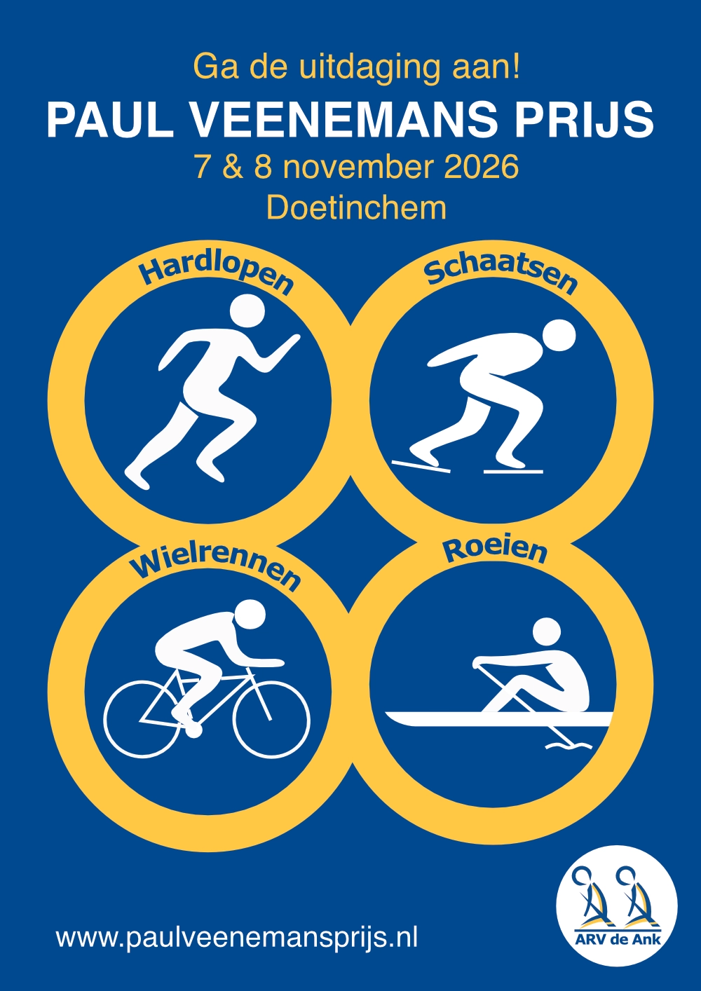 De Paul Veenemans Prijs 2025 wordt dit jaar georganiseerd door de Ank en is het weekend van 7 & 8 novemember in Doetichem. De Paul Veenemans Prijs is een meerkamp met de onderdelen Roeien , Hardlopen, Fietsen en Schaatsen. Deelnemers aan de wedstrijd worden geacht om naast het verplichte onderdeel roeien aan minimaal 2 van de 3 andere onderdelen deel te nemen. Meer informatie kan je vinden op Paul Veenemans Prijs en KNRB – Roeievenementen. De kosten zijn € 60,- per persoon. Wil je meedoen stuur dan even een mail naar wedstrijd@willem3.nl en vermeld even in welke veld en aan welke onderdelen je wilt meedoen.