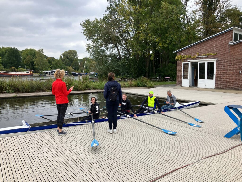 Tessa Zwolle-Appeldoorn nam de organisatie van de clinic op zich en had alles tot in de puntjes voorbereid. Zij zorgde voor voldoende instructeurs en ervaren mee-roeiers die de deelnemers konden begeleiden tijdens hun eerste kennismaking met het roeien.